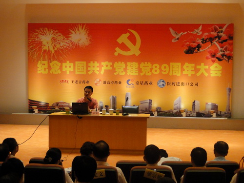 大會(huì)首先由廣藥集團(tuán)紀(jì)委書記、廣州藥業(yè)黨委書記楊秀微作紀(jì)念中國共產(chǎn)黨建黨89周年暨黨員紀(jì)律教育月活動(dòng)動(dòng)員講話。楊秀微書記在講話中回顧了我黨89年所走過的光輝歷程,勉勵(lì)在座的黨員,在迎接我們黨自己的光輝節(jié)日到來的時(shí)刻,更要牢記當(dāng)代中國共產(chǎn)黨人所肩負(fù)的歷史責(zé)任,準(zhǔn)確把握我們所處的歷史方位,清醒認(rèn)識(shí)我們面臨的形勢(shì)和任務(wù),在新的歷史條件下保持和進(jìn)一步提高企業(yè)黨組織的政治地位,充分發(fā)揮黨組織領(lǐng)導(dǎo)經(jīng)濟(jì)建設(shè)發(fā)展的堅(jiān)強(qiáng)核心作用,緊緊圍繞廣藥集團(tuán)的“百億工程”整體目標(biāo),認(rèn)真抓好各項(xiàng)工作,克服困難,把握醫(yī)藥行業(yè)大發(fā)展的機(jī)遇期,繼續(xù)保持企業(yè)又好又快發(fā)展的良好態(tài)勢(shì)。楊書記在講話中還對(duì)企業(yè)如何認(rèn)真抓好今年的黨員紀(jì)律教育學(xué)習(xí)月活動(dòng),加強(qiáng)企業(yè)的廉政建設(shè),反腐倡廉工作進(jìn)行了動(dòng)員,提出了要求。