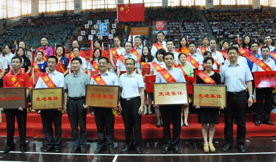 5月26日下午,廣藥集團(tuán)在二沙島廣東體育館舉行了2014年“五一”表彰暨廣藥白云山職工運(yùn)動(dòng)會(huì)開幕式,充分展現(xiàn)了廣藥白云山員工團(tuán)結(jié)一致、凝聚力量的集體主義觀念,以及學(xué)習(xí)先進(jìn)、建功立業(yè)的時(shí)代風(fēng)采和強(qiáng)身健體、英姿颯爽的精神風(fēng)貌。會(huì)上,隆重表彰了王文楚同志等10名“廣藥白云山勞動(dòng)模范”、李錦云同志等50名“廣藥白云山先進(jìn)生產(chǎn)工作者”,授予和黃中藥等5個(gè)單位“廣藥白云山先進(jìn)集體”稱號(hào)和奇星藥業(yè)一車間等10個(gè)科室、班組“廣藥白云山工人先鋒號(hào)”稱號(hào)。
